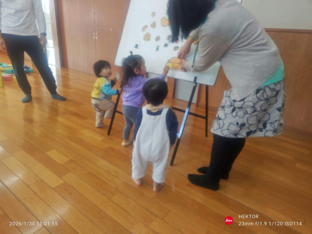 パネルシアターを用意して、みんなで犬さんにお弁当を作りました。