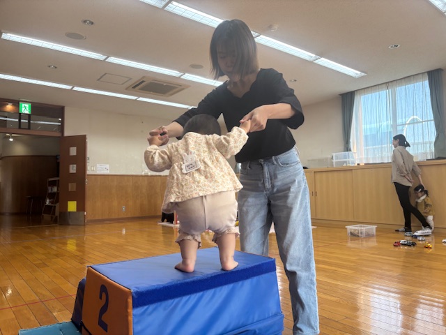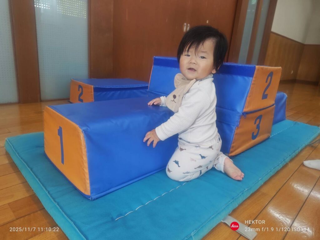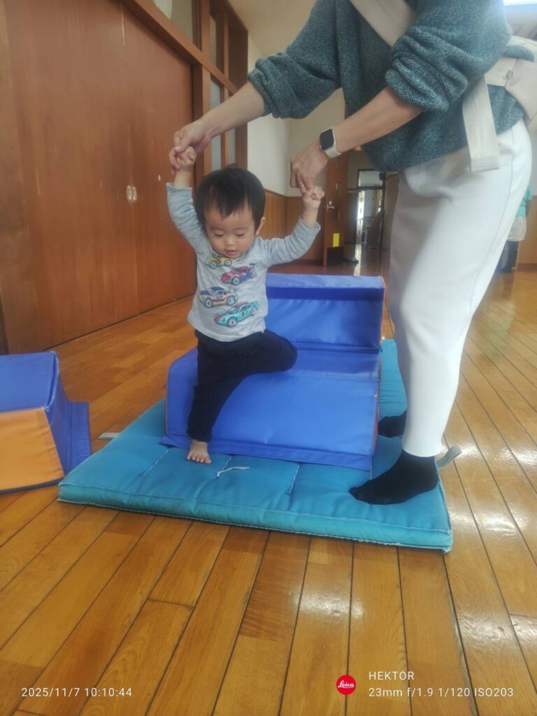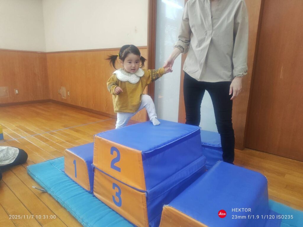 お父さん、お母さんと一緒に果敢にも跳び箱の山に挑戦してくれました。