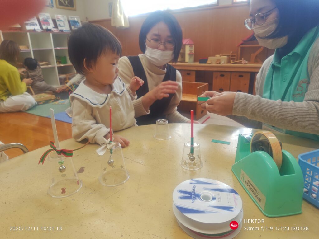 今月の「こどものおもちゃをつくろう」は、12月なのでベルを作りました。