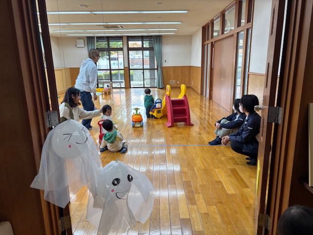 今日のこあらひろばは、ハロウィンなのでおばけがお出迎えしました。