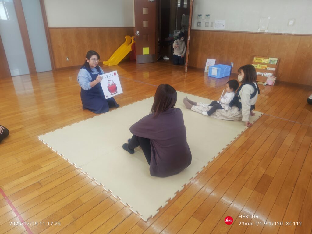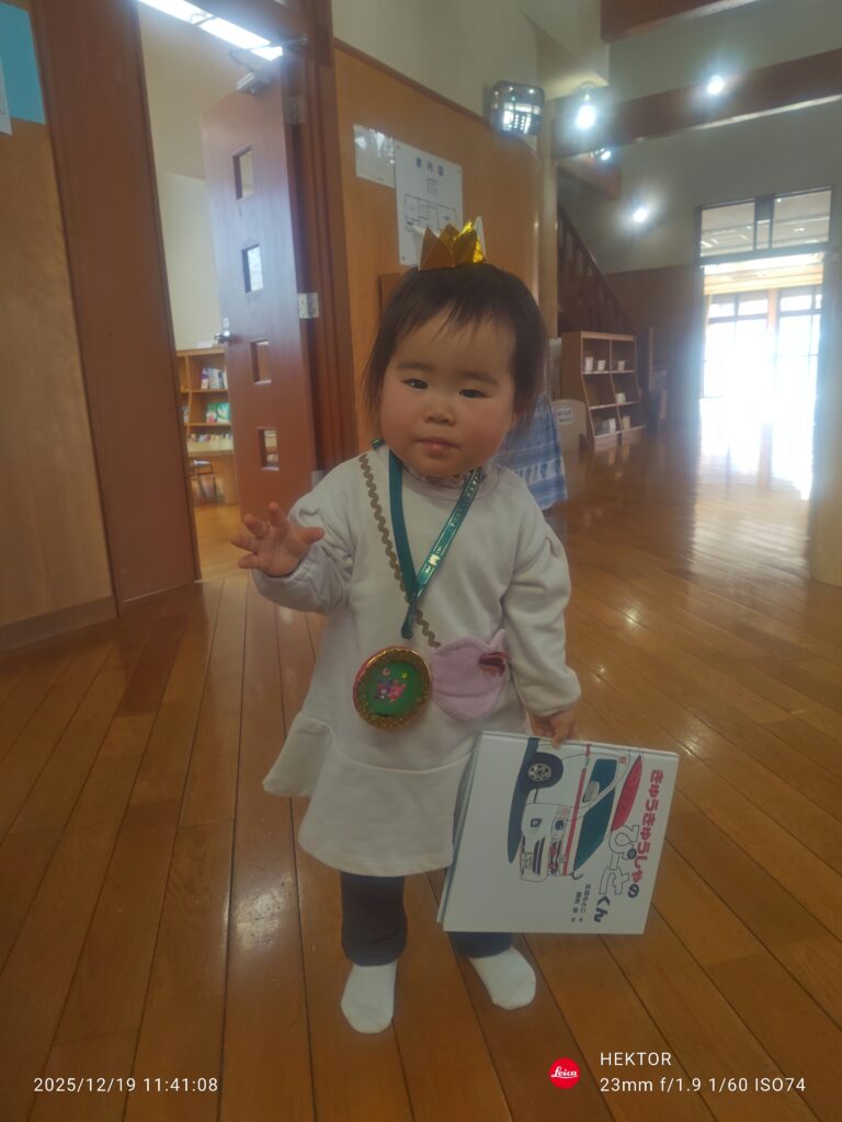 今日は、図書館から司書さんが来てくださり大型絵本を読んでくださいました。