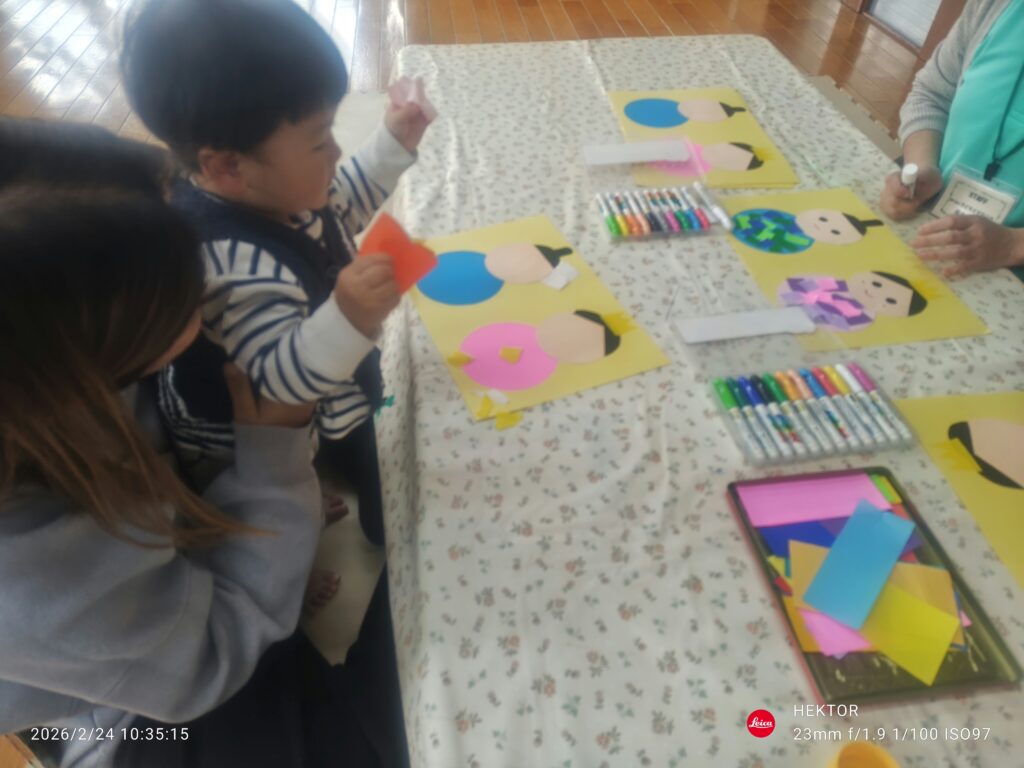 紙をビリビリに破いて好きなように貼ってもらいました